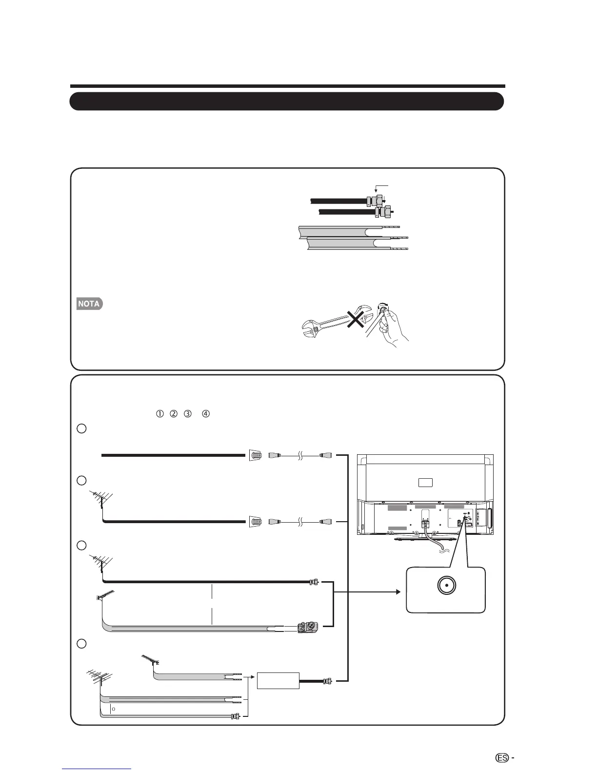 • Conecte el cable de la antena a la TV utilizando uno de los métodos que aparecen en