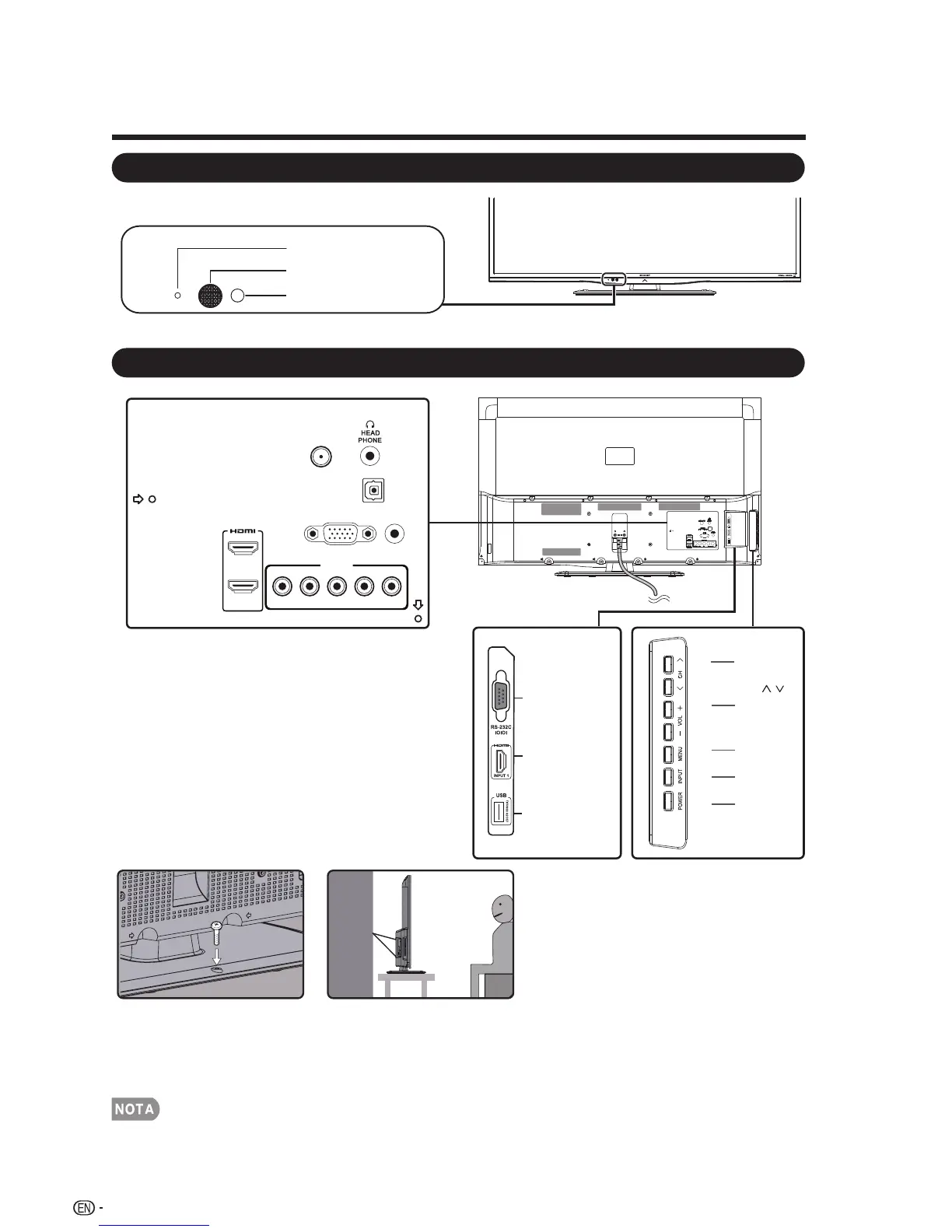 1. Antes de la utilización de la TV, sujete la TV a la mesa estable con el tornillo (tamaño recomendado: T4 x 22) (Fig. 1).