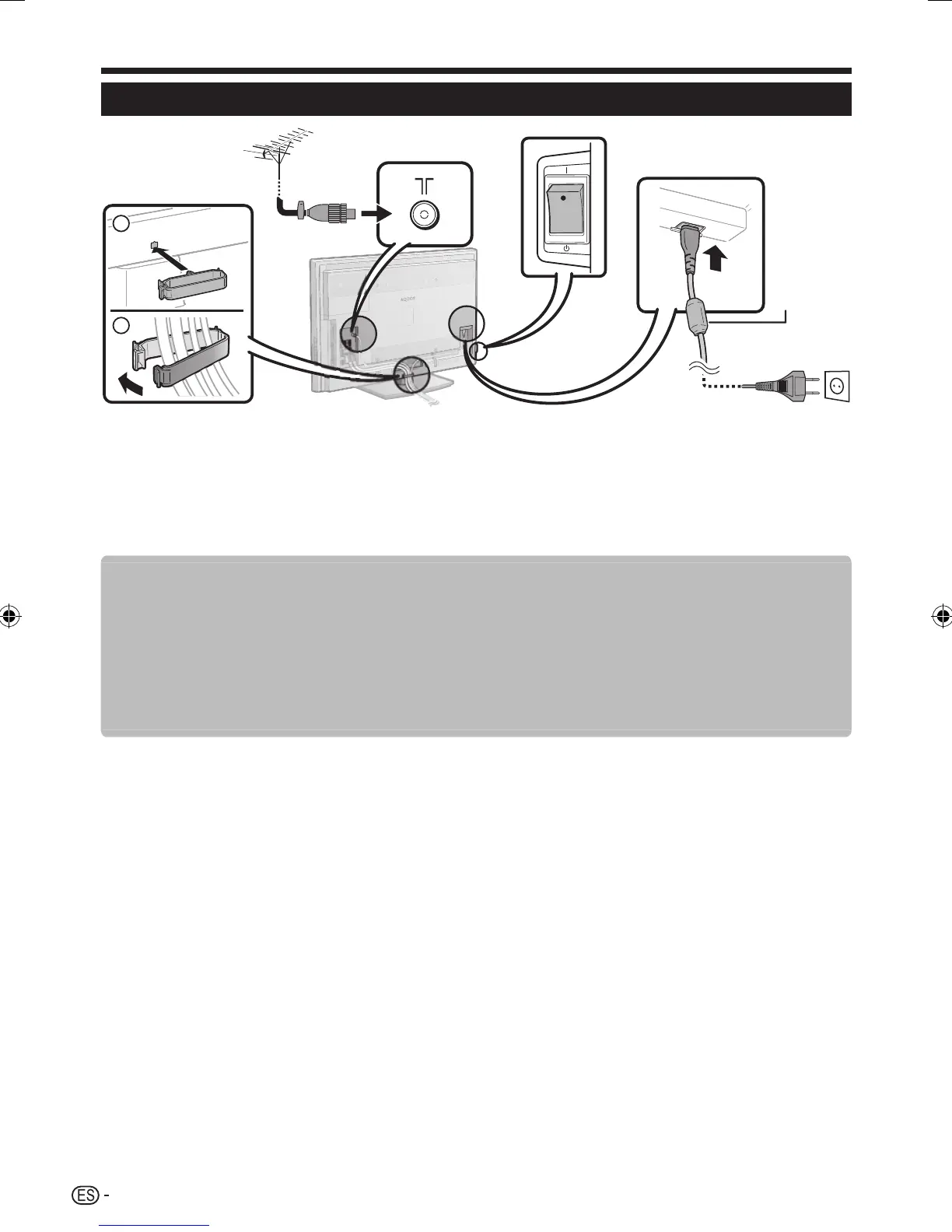 procedimientos después de conectar el cable de la antena al terminal de la antena en la parte posterior de su