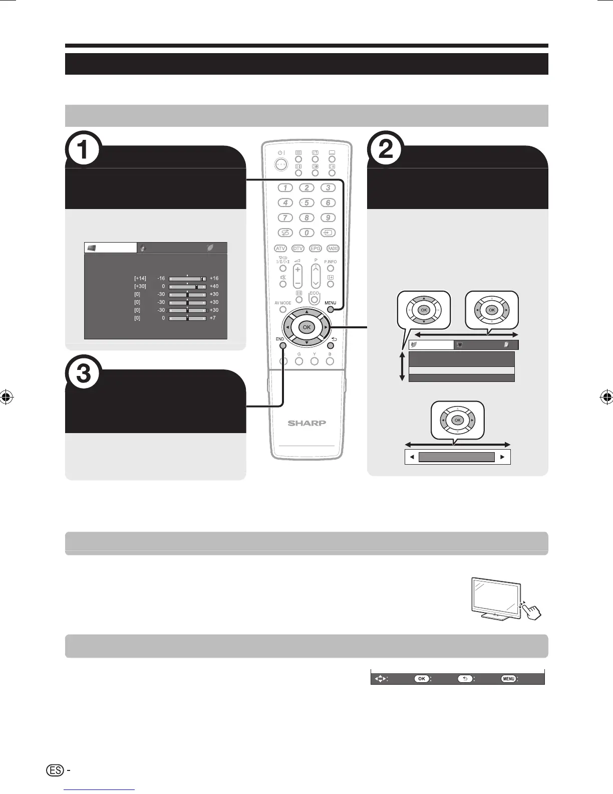 Para ejecutar ajustes en el televisor necesita hacer aparecer la OSD. A la OSD para los ajustes se le llama “MENÚ”.