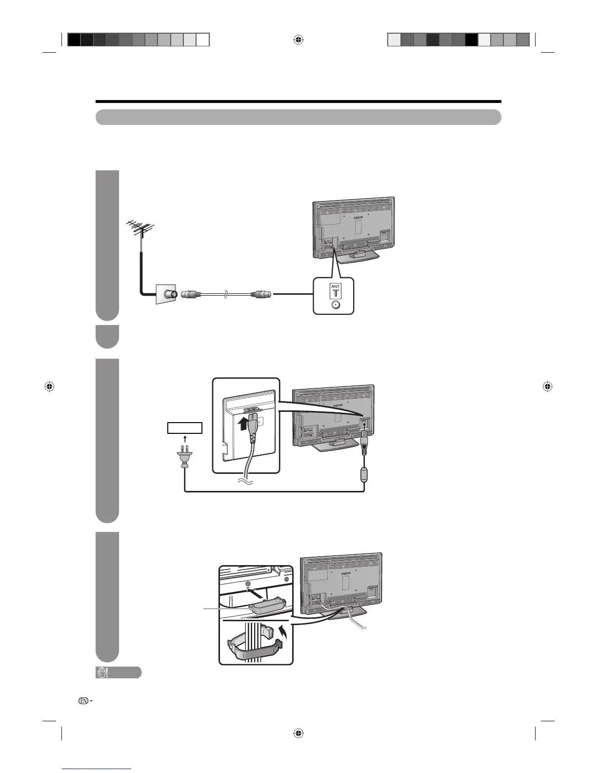 • Do not turn on the power of the TV before connecting the AC cord.