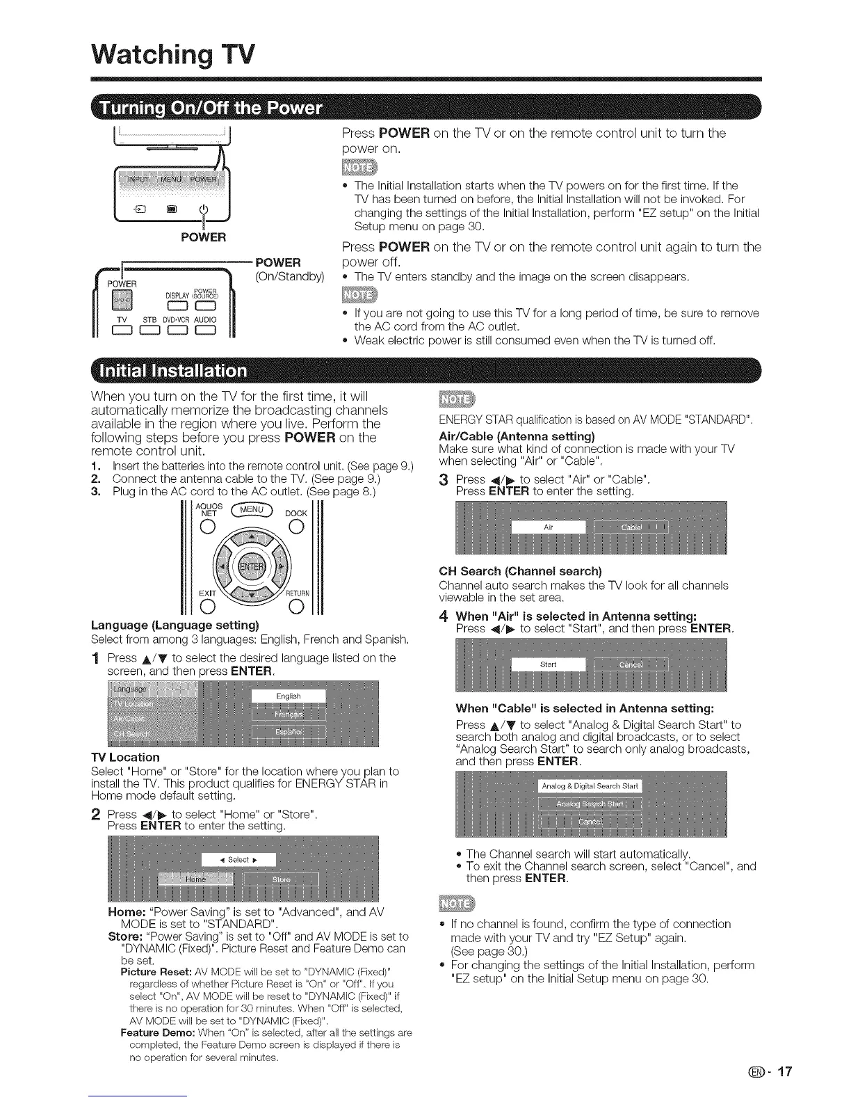 o The Initial Installation starts when the TV powers on for the first time. If the