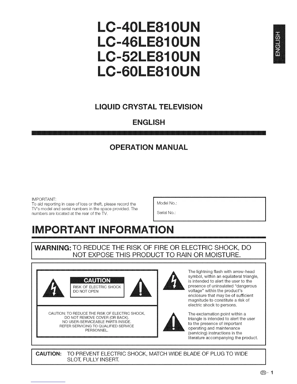 WARNING: TO REDUCE THE RISK OF FIRE OR ELECTRIC SHOCK, DO