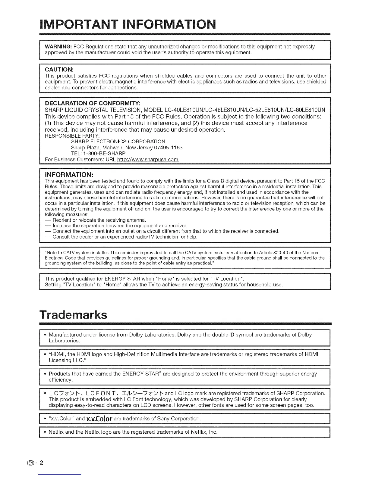 L C _ _ _/1--, L C F O N T, T)b-_--_ _ _ I'- and LC logo mark are registered trademarks of SHARP Corporation.