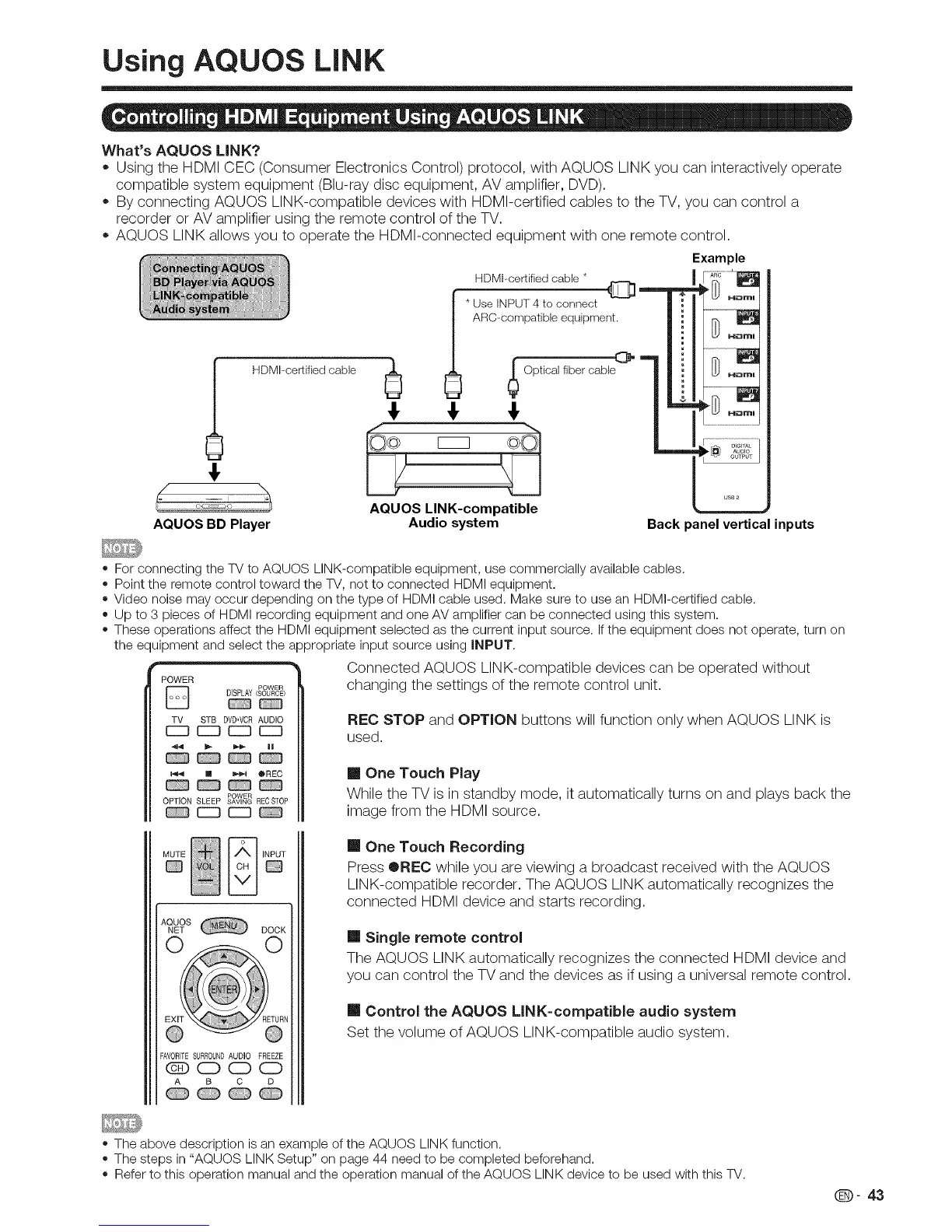 AQUOS LINK allows you to operate the HDMI-connected equipment with one remote control.