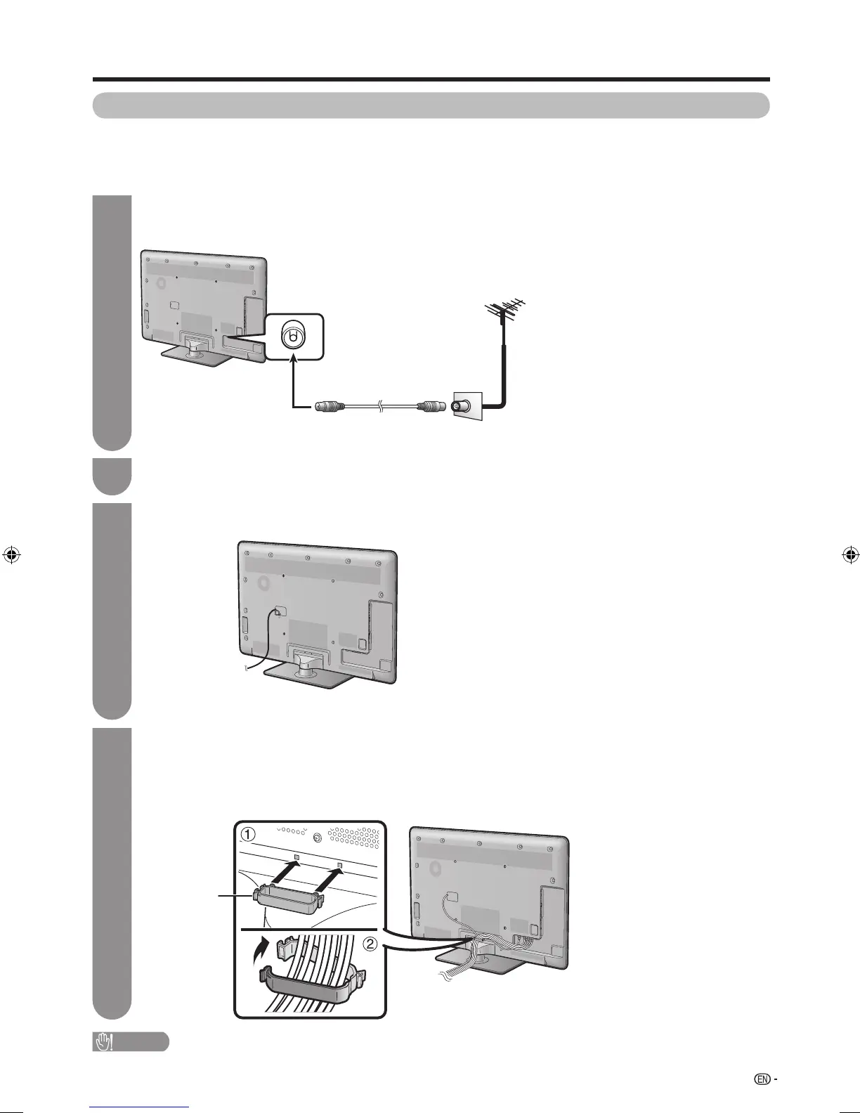 Attach the cable clamp to the rear of the TV.