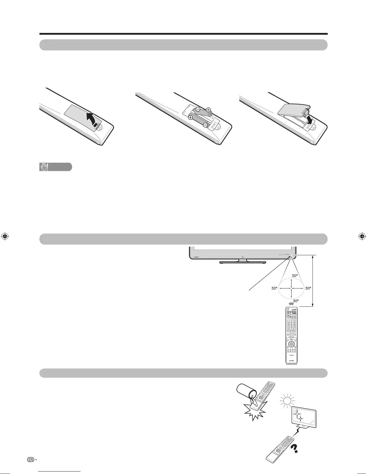 Before using the TV for the fi rst time, insert two “AAA” size batteries (supplied). When the batteries become