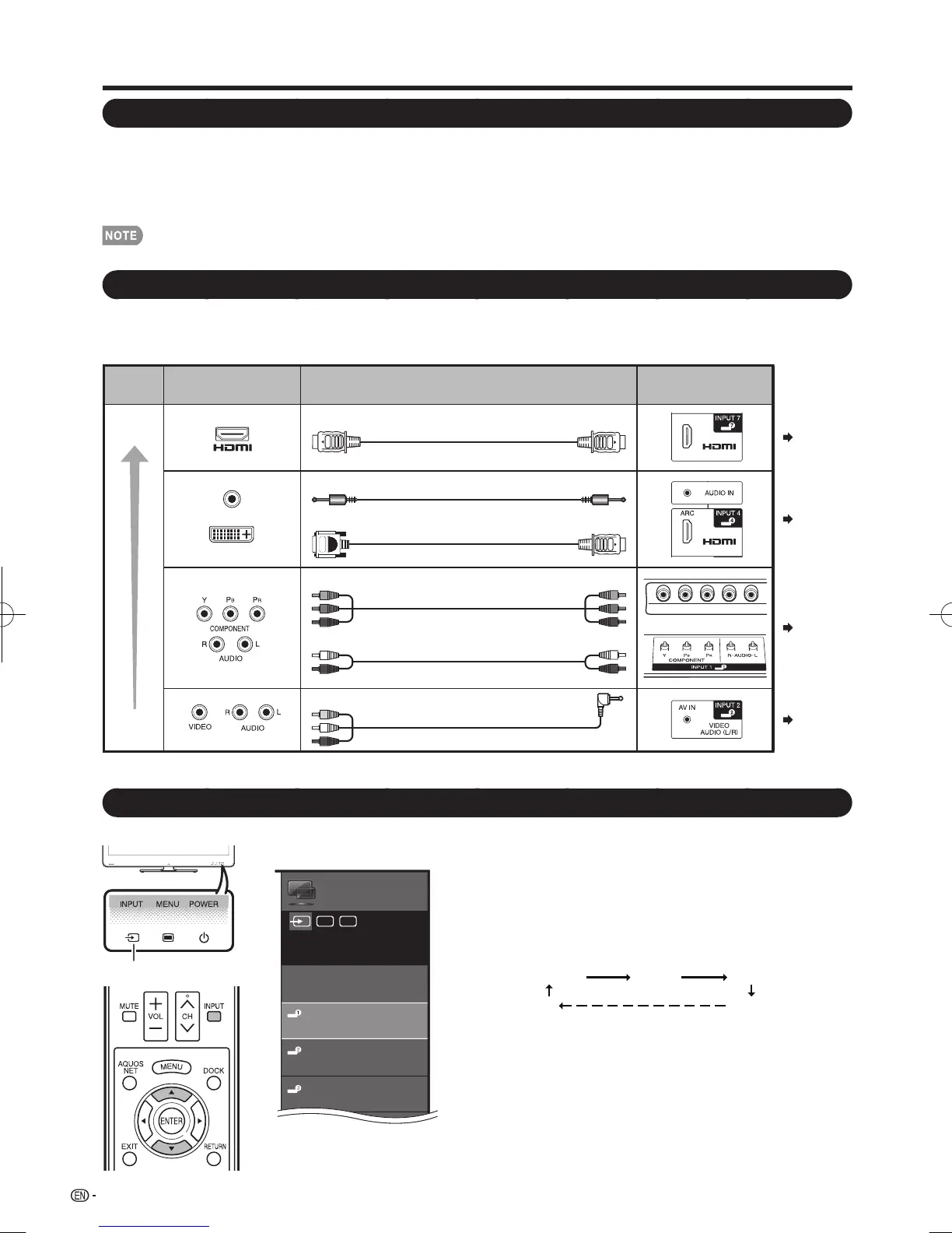 To view external source images, select the input source by pressing INPUT on the remote control unit or on the TV.