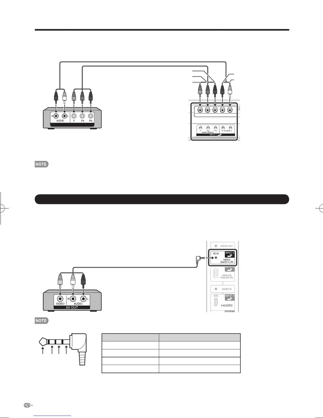 • For the AV cable to connect to the INPUT 2 terminal, use a plug described below.