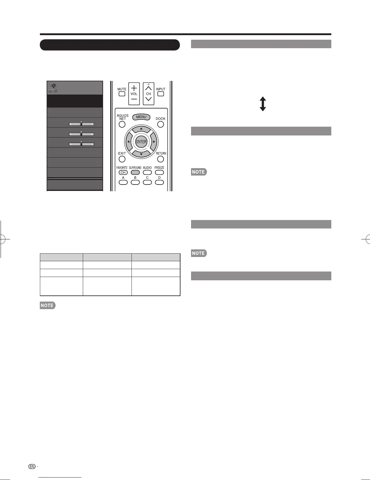 Select "Auto Volume", "Surround", "Bass Enhancer" or