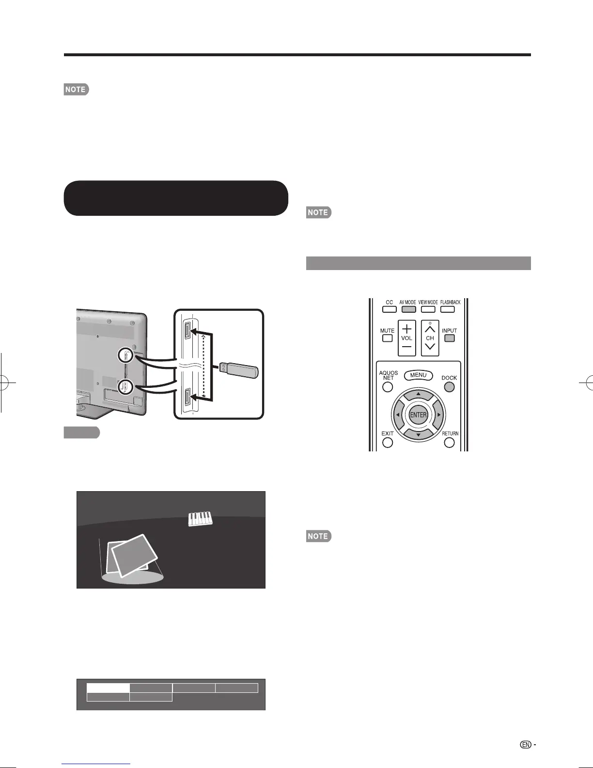 You can enjoy viewing photos and listening to music from external USB memory devices.