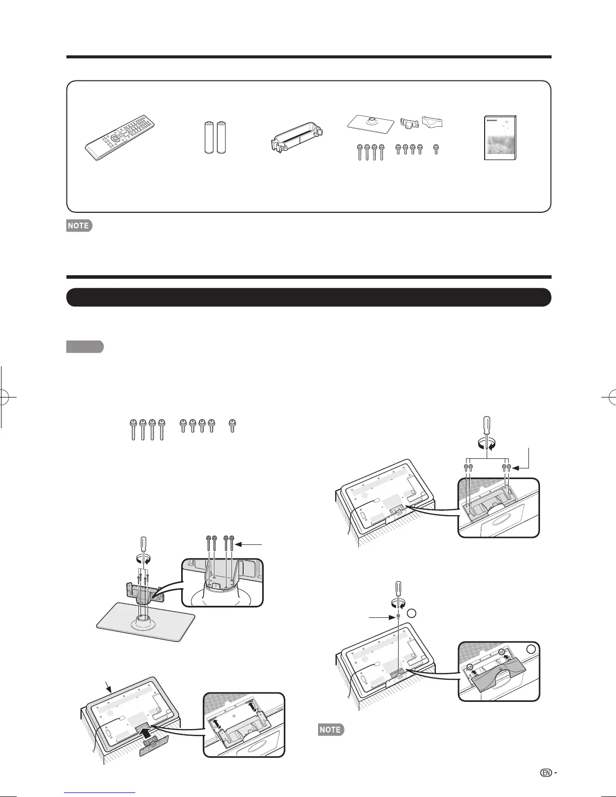 • Be sure to follow the instructions. Incorrect installation of the stand may result in the TV falling over.