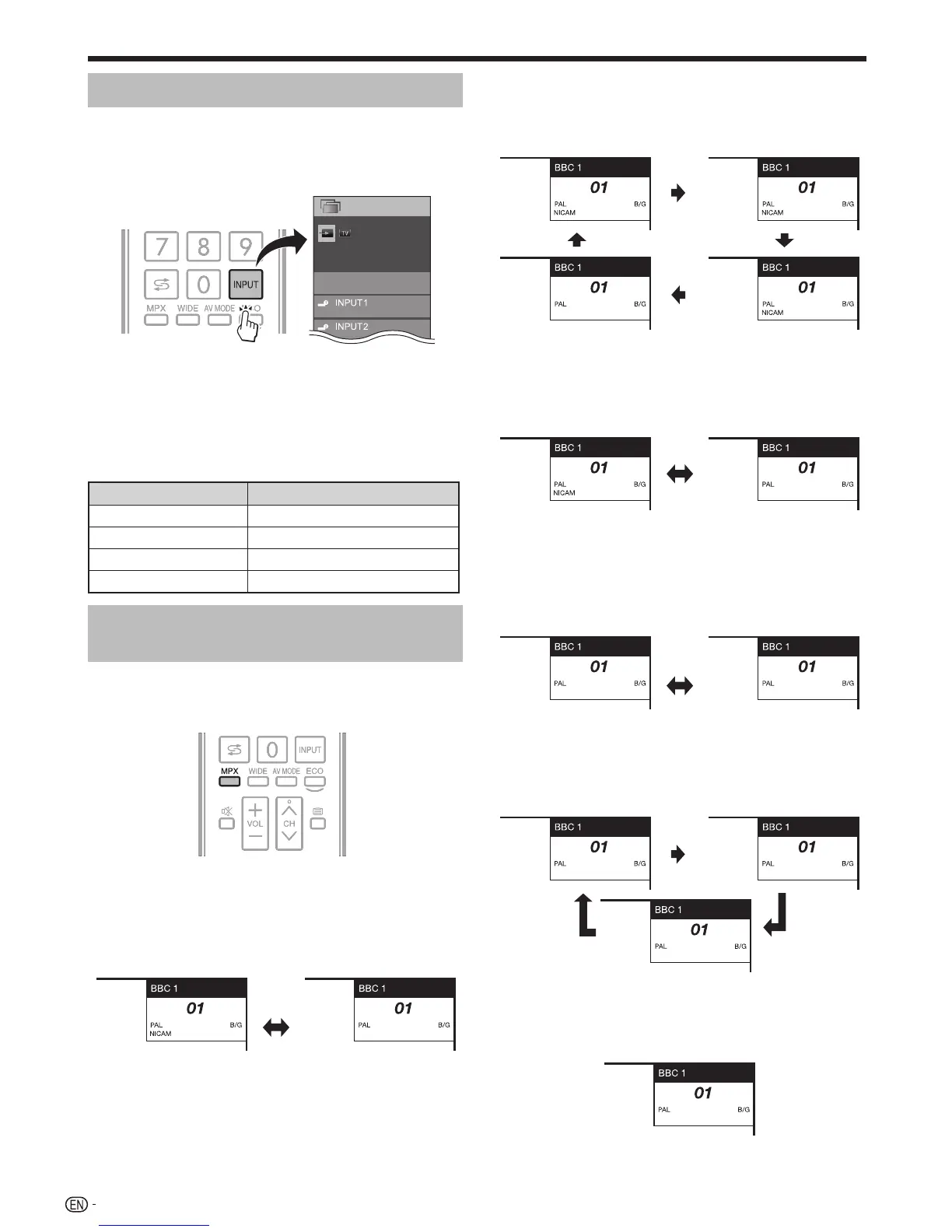 NICAM CH A, NICAM CH B, NICAM CH AB and MONO.