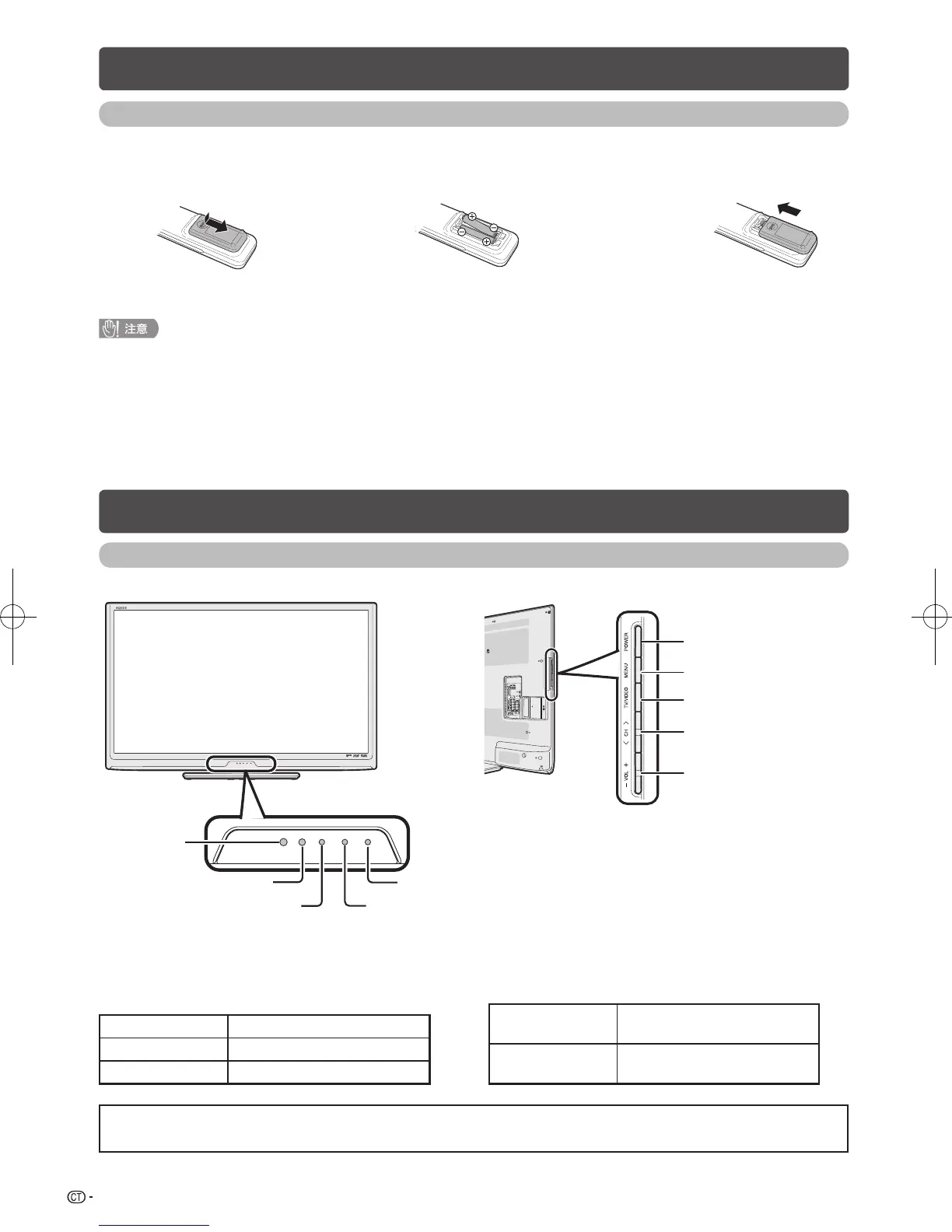 在第一次使用本電視機之前,請插入兩枚“AAA”型電池(附送)。如果電池耗盡,而且遙控器不能操作,請使