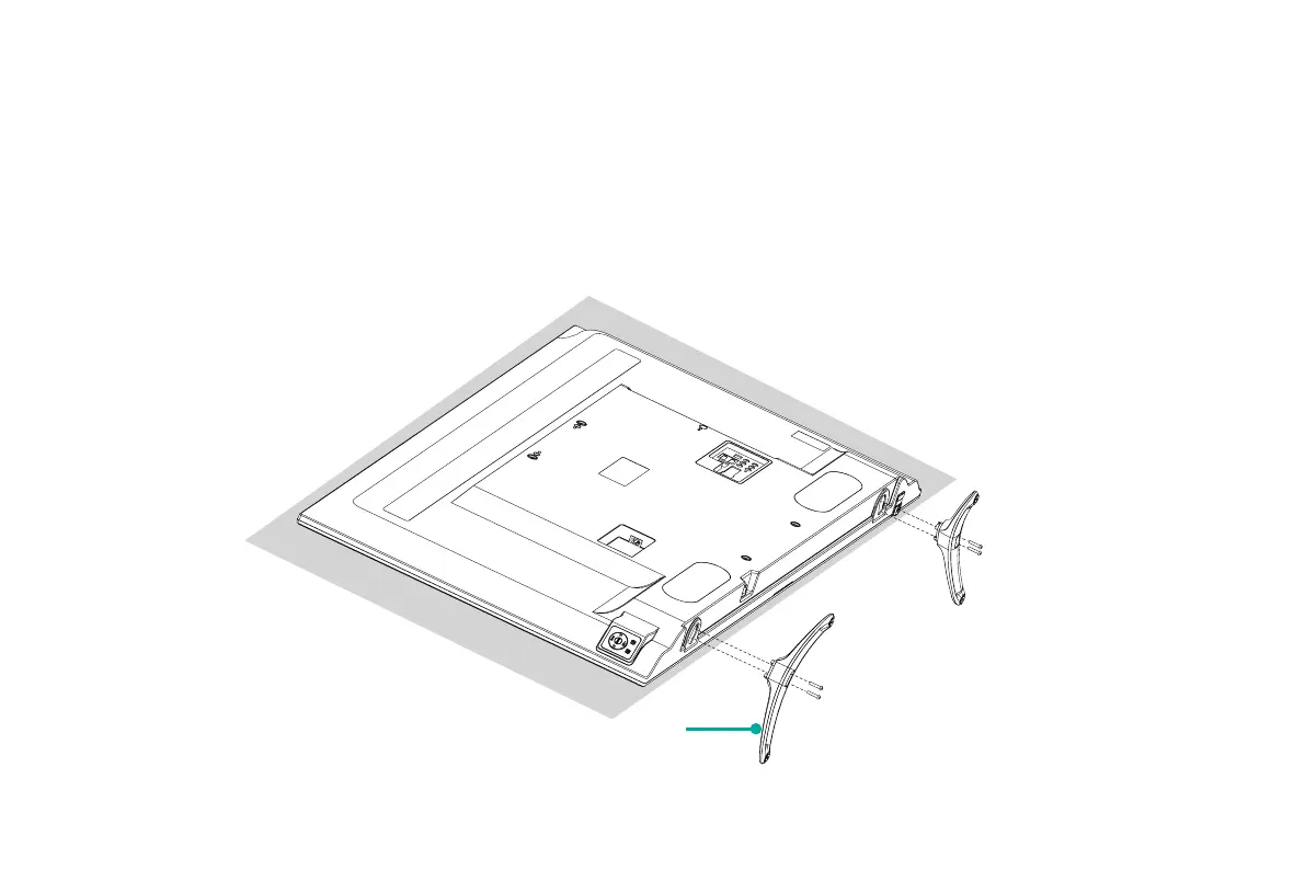 2. Remove the 2 stands from the accessory bag and then insert the stands into the bottom slots of the TV.