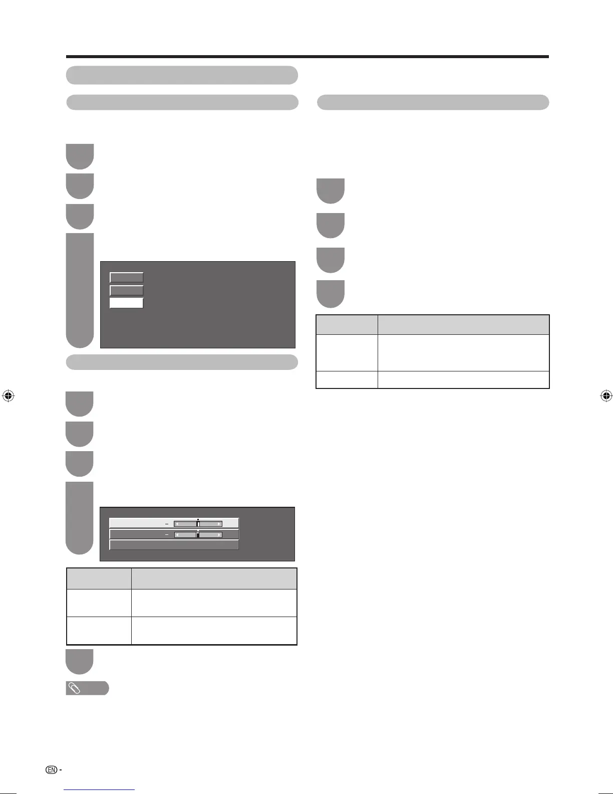 • For resetting all adjustment items to the factory preset