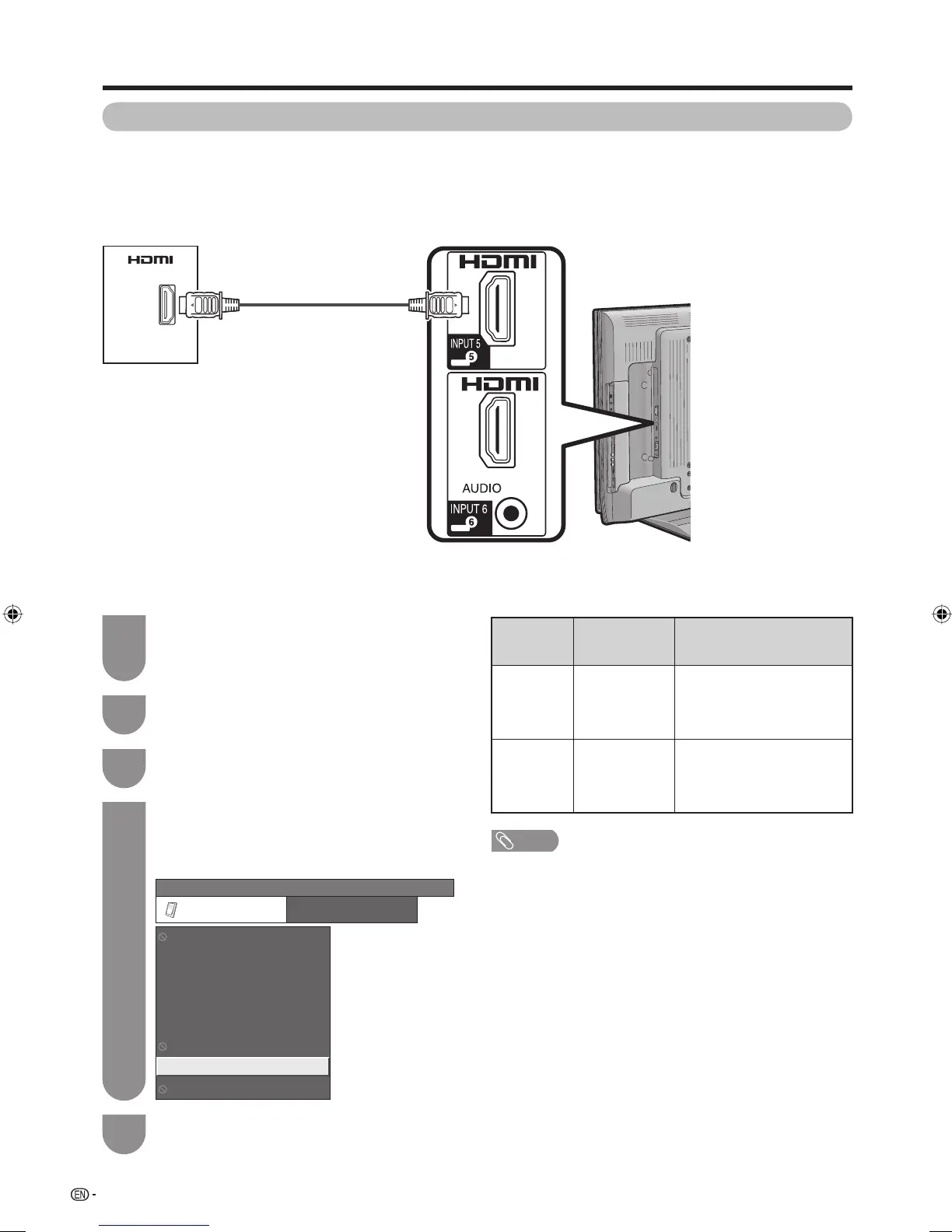 output the audio and picture from an HDMI output device on the TV, select “INPUT4”, “INPUT5” or “INPUT6” by