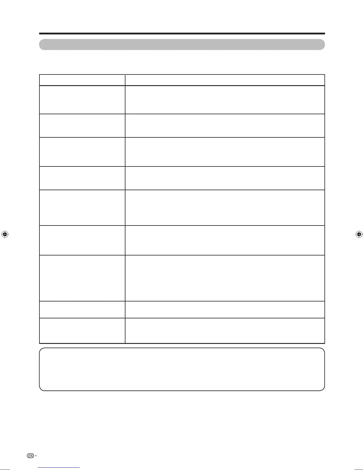 The problems described below are not always caused by malfunctions. Check the TV again before having the TV