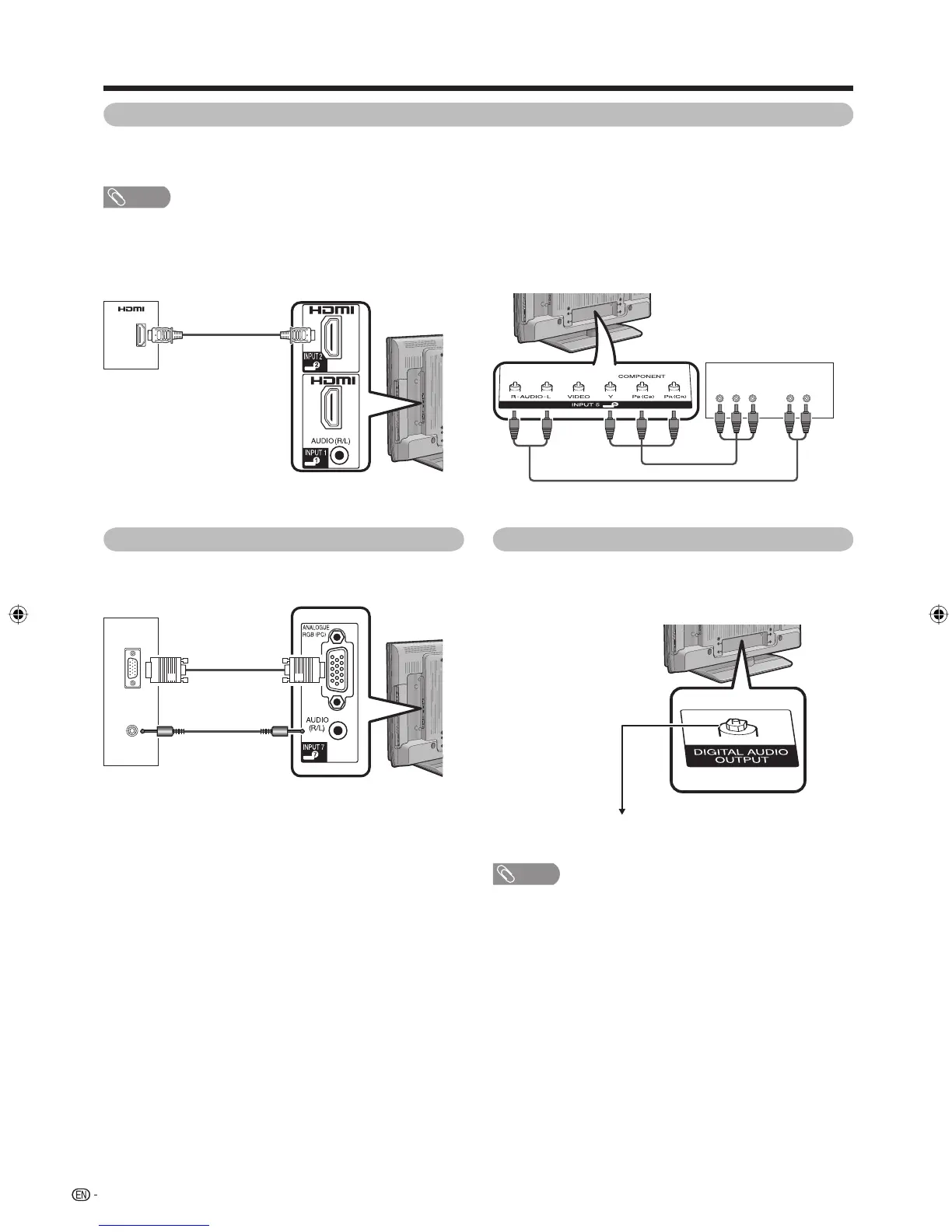 • When using a DVI-HDMI conversion adaptor, input the Audio Signal from the AUDIO terminal of INPUT1. (See page 37.)