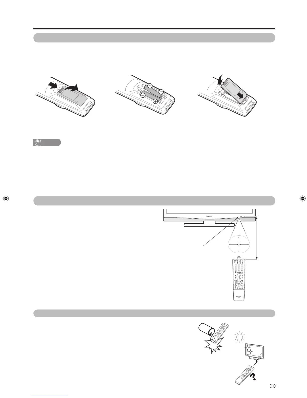 • If you will not be using the remote control unit for an extended period of time, remove the batteries from it.