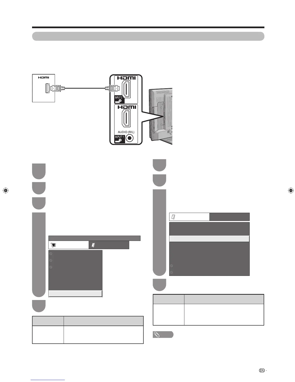 output the audio and picture from an HDMI output device on the TV, select “INPUT1”, “INPUT2” or “INPUT3” by