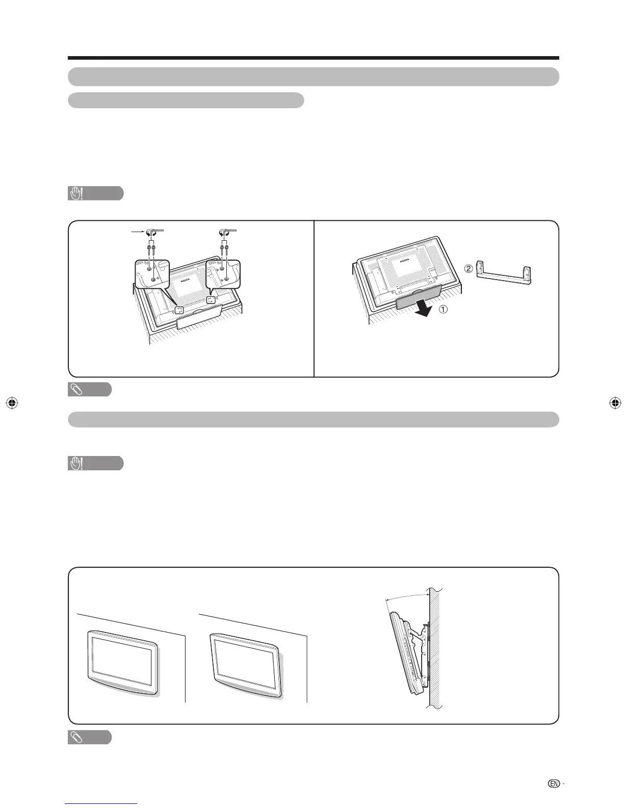• This TV should be mounted on the wall only with the AN-52AG4 (SHARP) wall mount bracket. The use of other wall