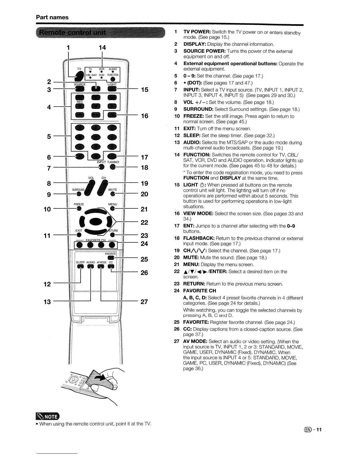SAT, VCR, DVD and AUDIO operation. Indicator lights