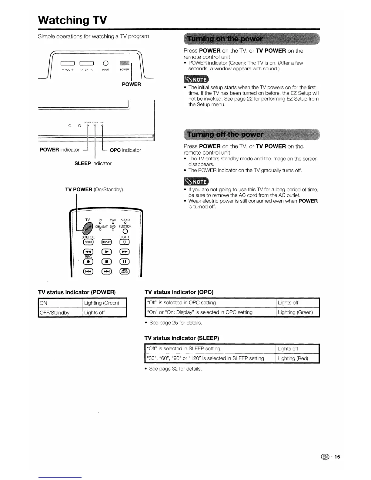 or TV POWER on the