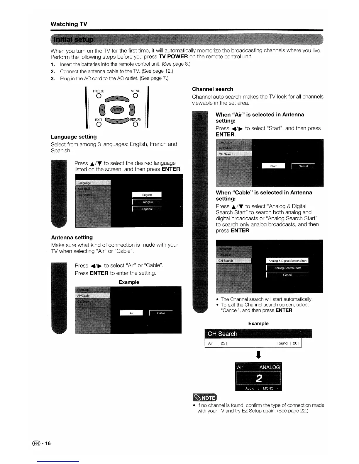 TV when selecting "Air" or "Cable".