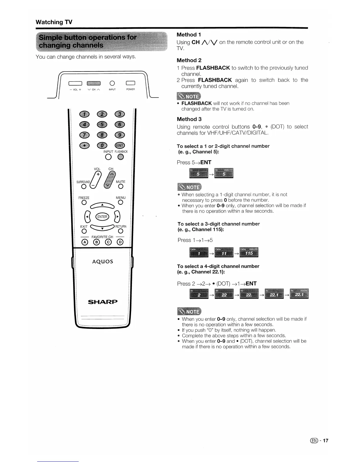 (l> When selecting a 1-digit channel number, it