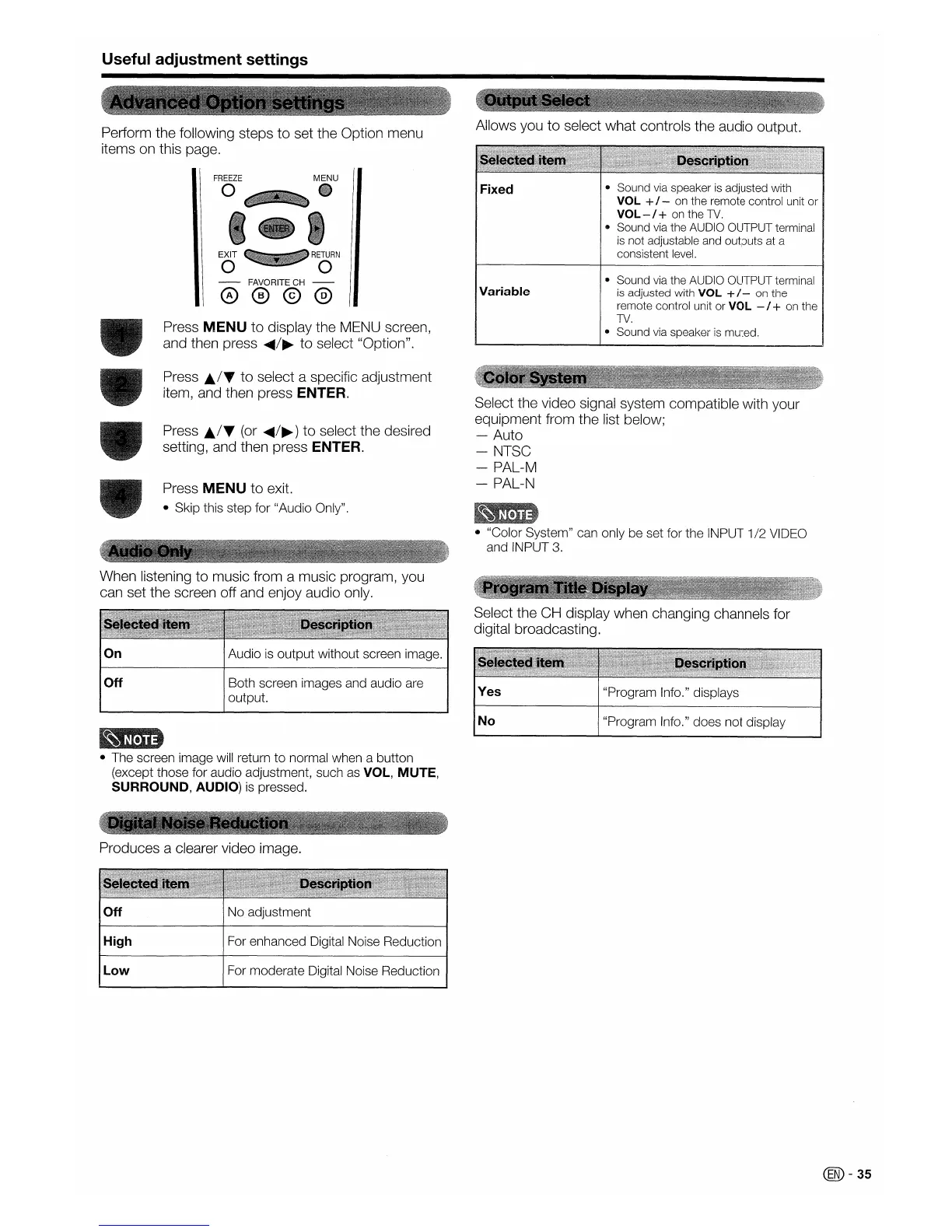 • "Color System" can only be set for the INPUT 1/2 VIDEO
