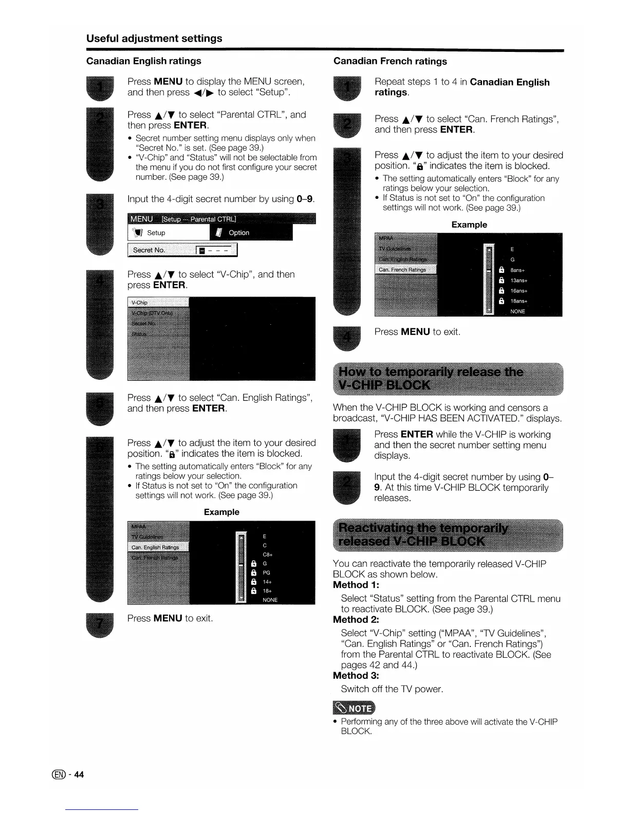 Select "V-Chip" setting ("MPAA", "TV Guidelines",