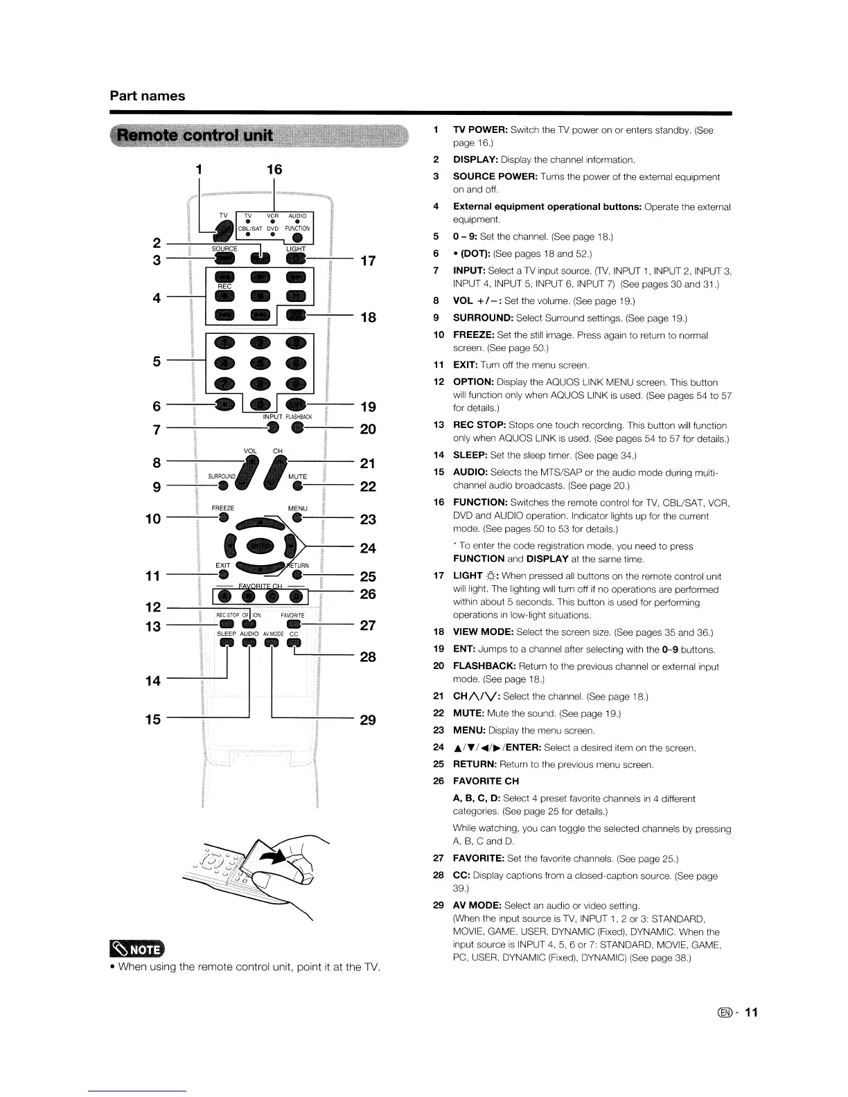 • When using the remote control unit, point
