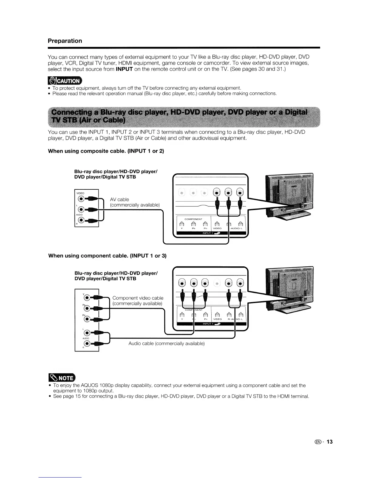 • See page 15 for connecting a Blu-ray disc player, HD-DVD player,