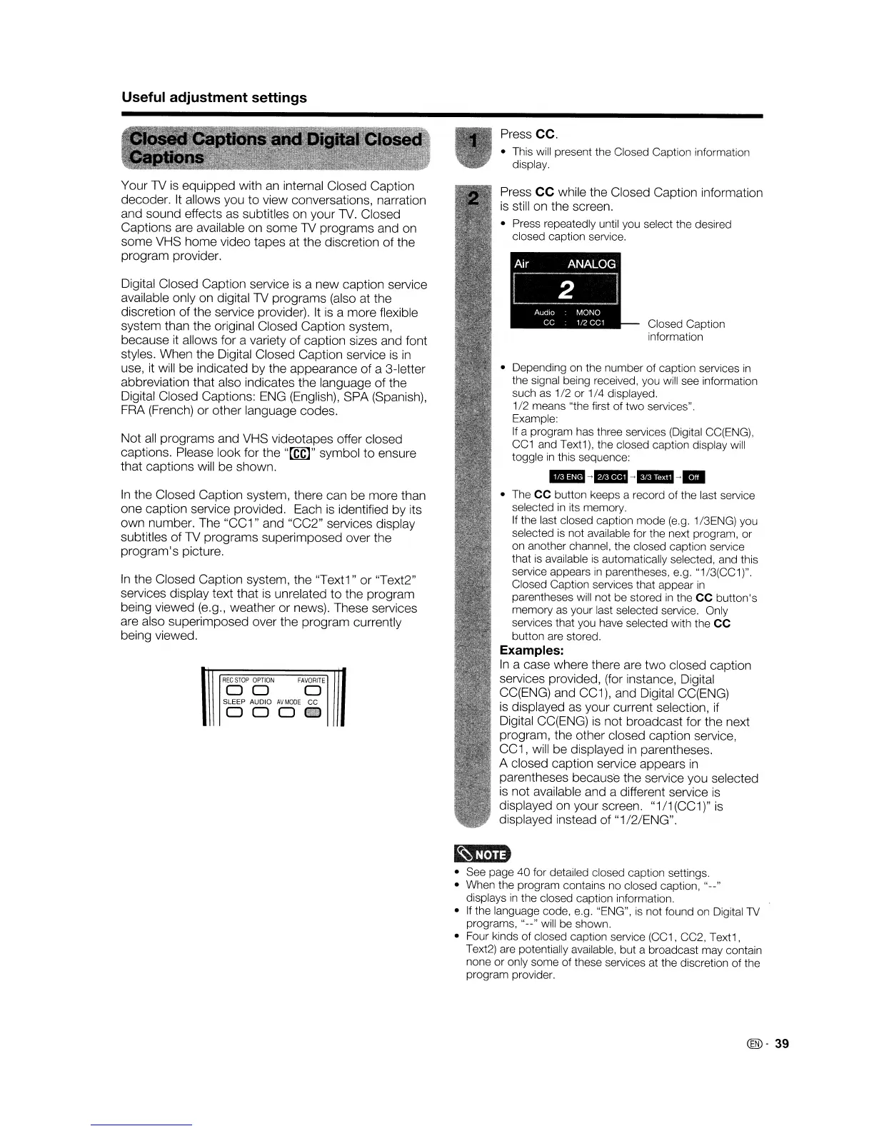 • See page 40 for detailed closed caption settings.