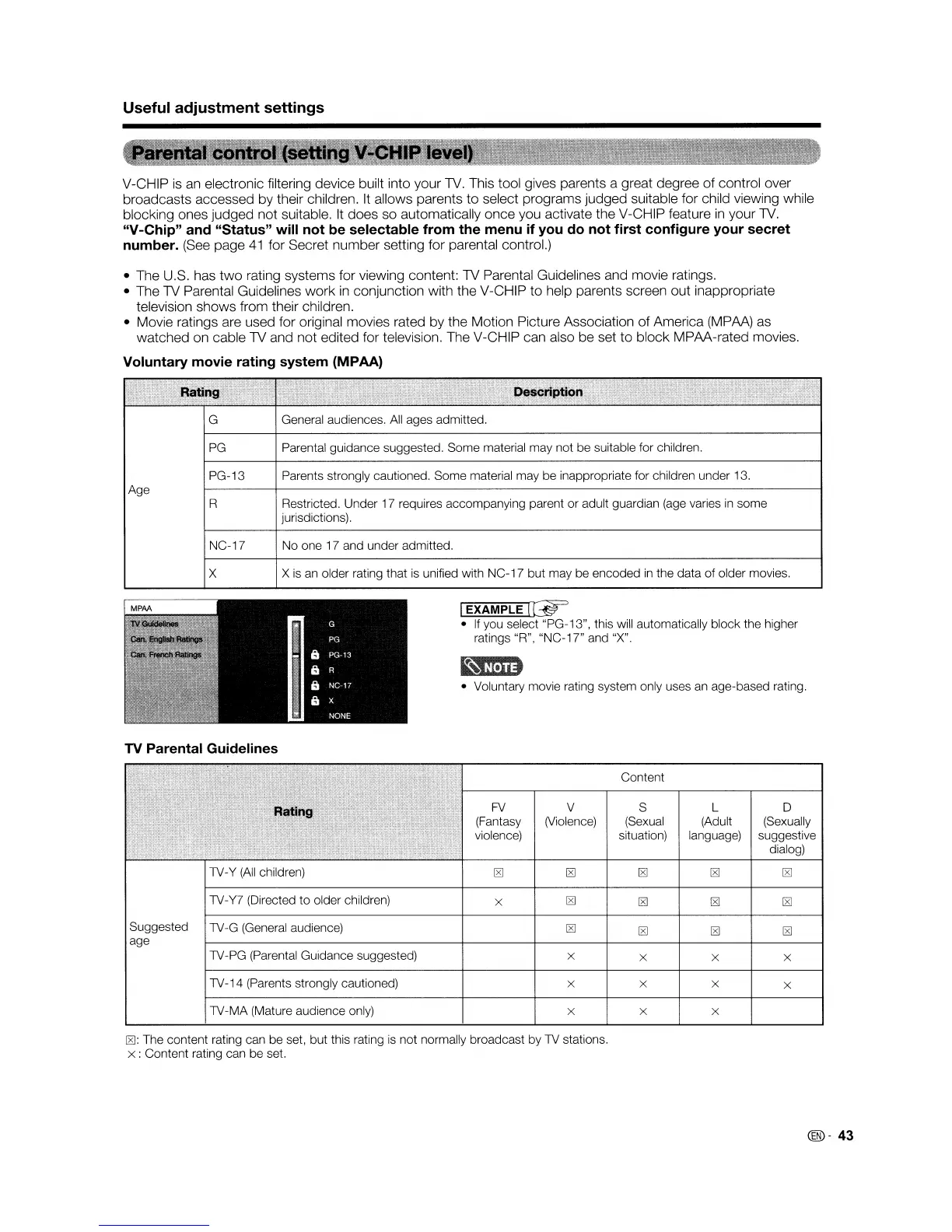 and not edited for television. The V-CHIP can also be set to block MPAA-rated movies.