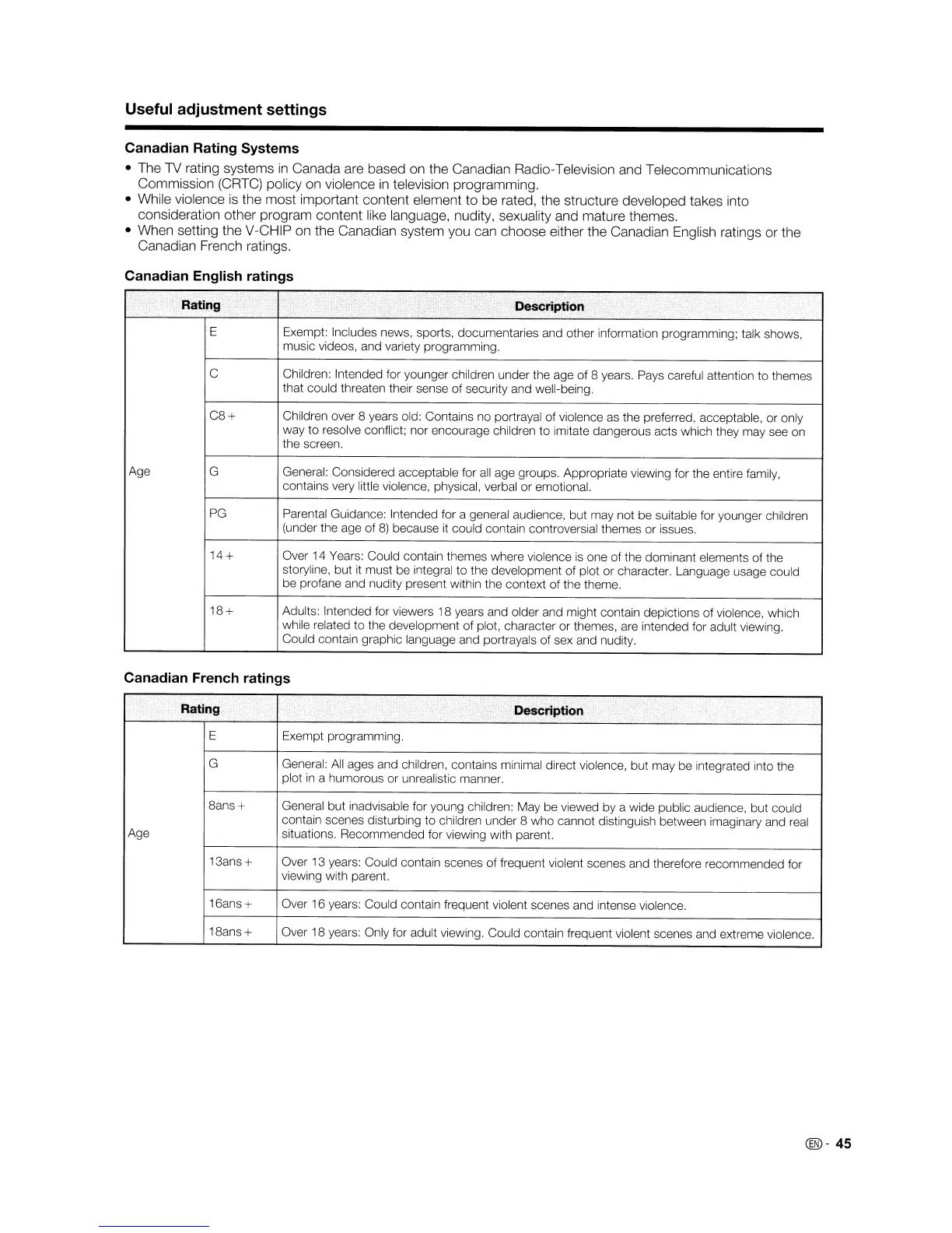 When setting the V-CHIP on the Canadian system you can choose either the Canadian English ratings or the