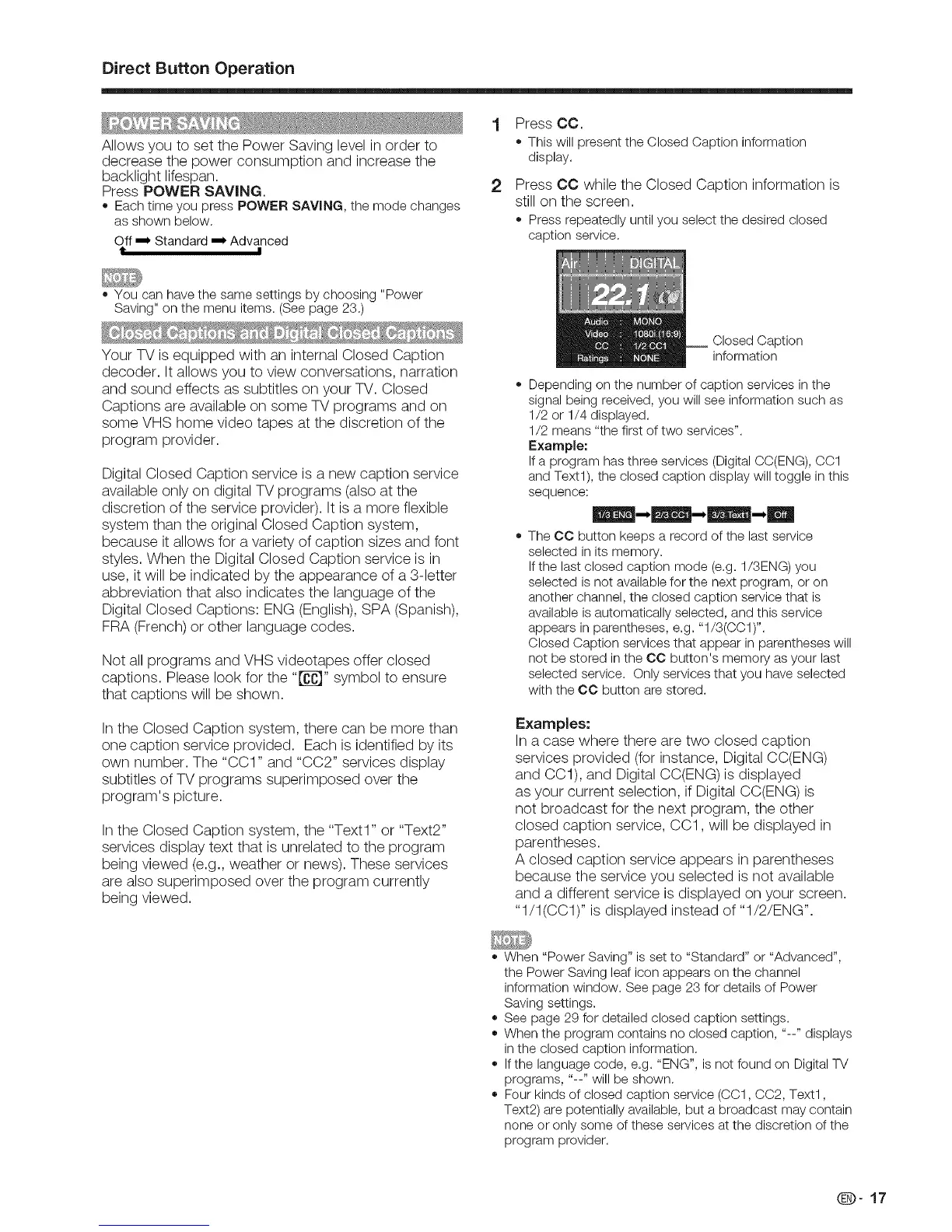 "1/1 (CC1)" is displayed instead of "I/2/ENG".