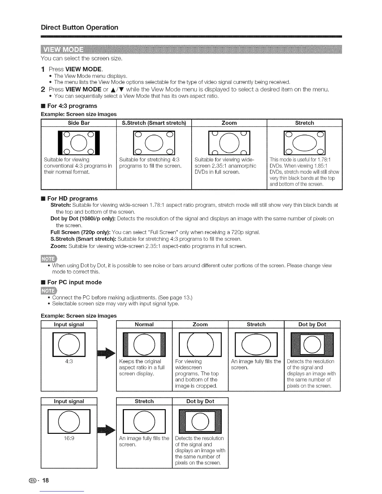 o You can sequentially select a View Mode that has its own aspect ratio.
