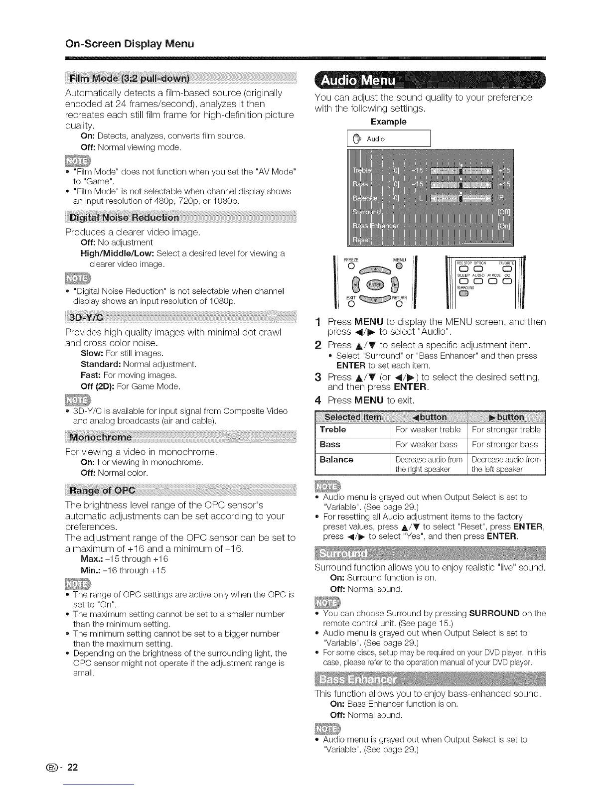 o Select "Surround" or "BassEnhancer"and then press