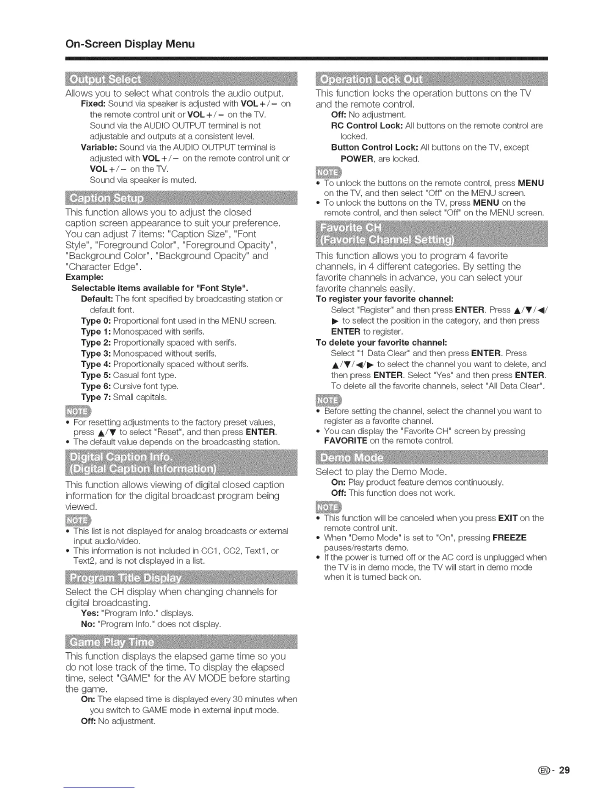 This function allows viewing of digital closed caption