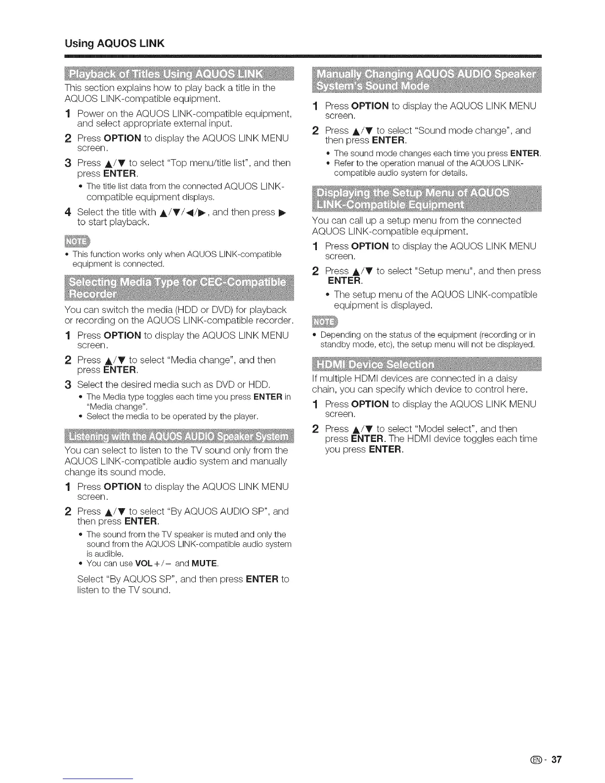 soundfrom the AQUOS LINK-compatibleaudio system