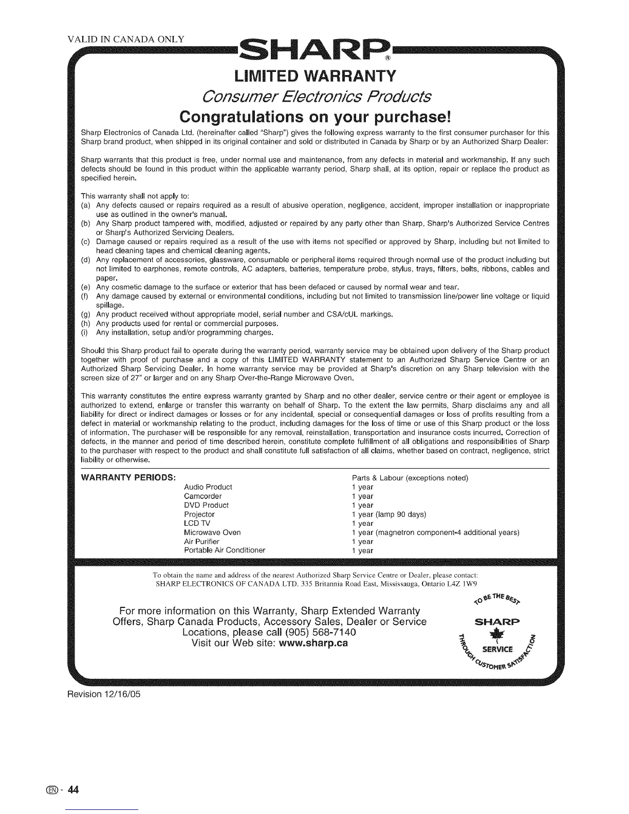 For more information on this VVarranty, Sharp Extended Warranty