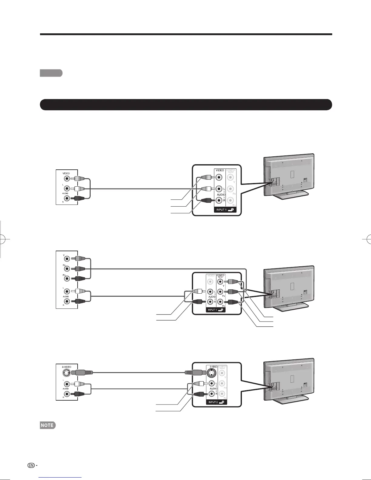 • To enjoy the AQUOS 1080p display capability, connect your external equipment using a component cable and set the
