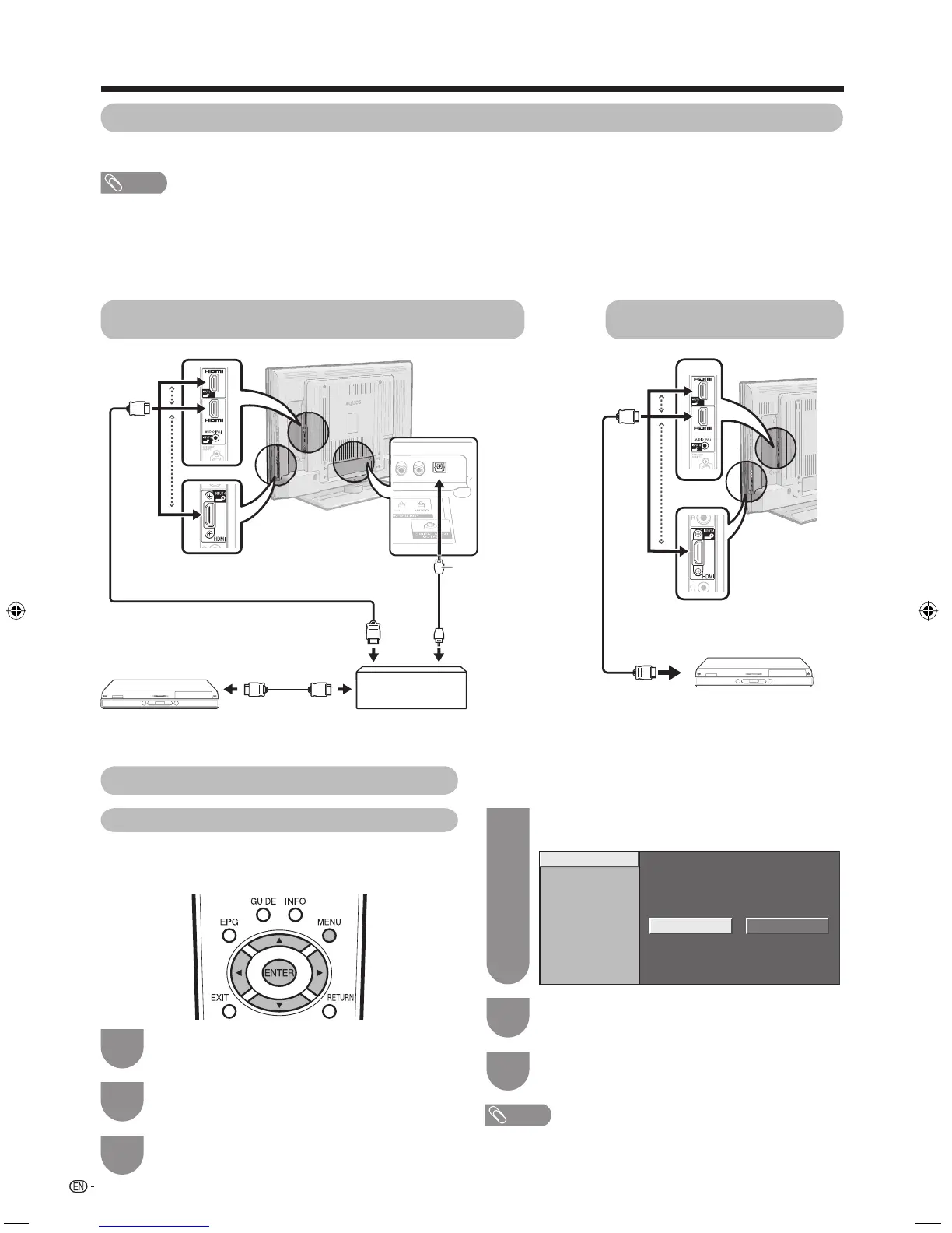 • After unplugging connection cables or changing the connection pattern, fi rst turn on the power of the TV with all relevant