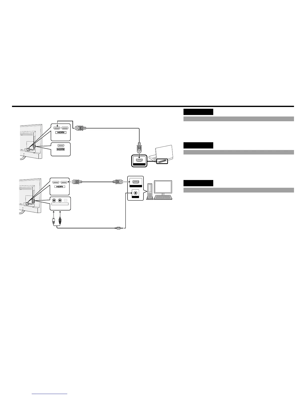 addition to connecting an HDMI-certified cable to the HDMI IN 2 terminal, connect an RCA audio to Ø 3.5