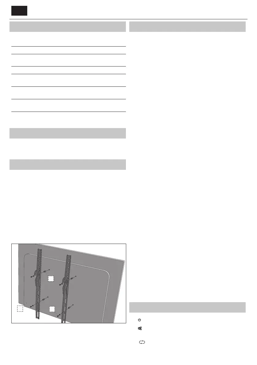 los tornillos proporcionados en los ori cios de montaje en pared del televi-