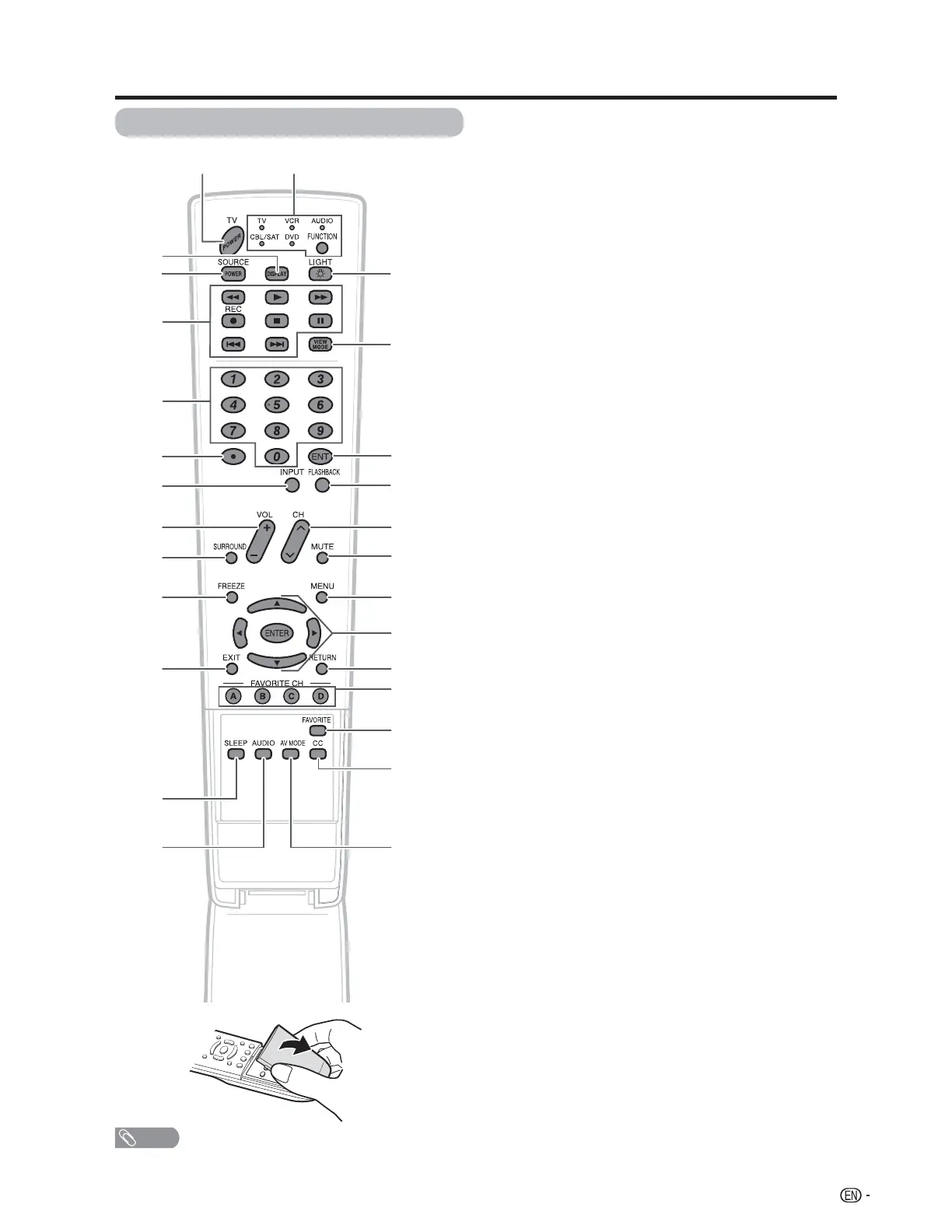 SAT, VCR, DVD and AUDIO operation. Indicator lights up