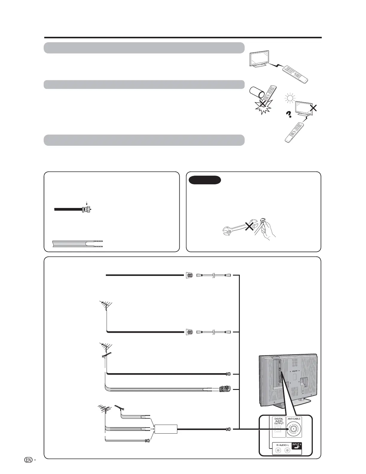 To enjoy a clearer picture, use an outdoor antenna. The following is a brief explanation of the types of connections