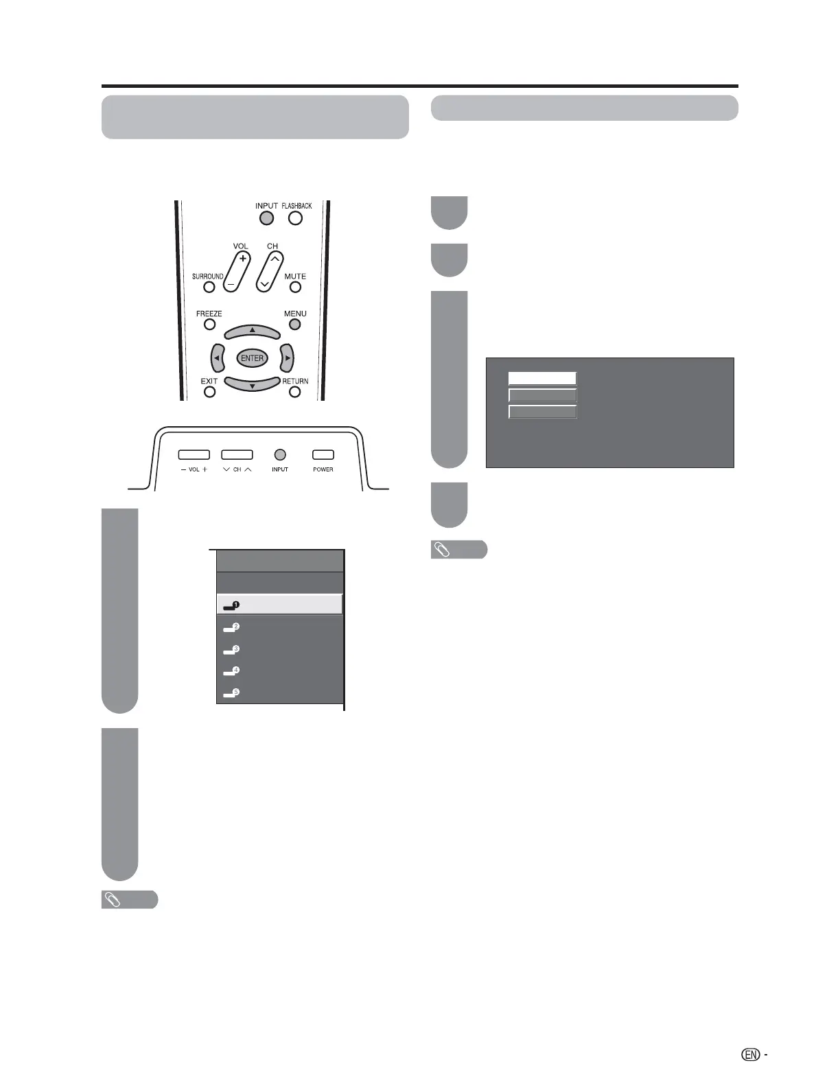 • You can also select the input source by pressing